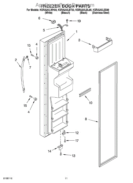 The Freezer Door Gasket is an OEM replacement part for Whirlpool refrigerators. It creates a tight insulating seal around the perimeter of the freezer door opening. The gasket helps maintain consistent sub-freezing temperatures inside by preventing cold air loss. Causes relate to natural compression fatigue over time, cracks developing with use, or accidental slicing/tears from sharp edges within the freezer. Symptoms of a compromised gasket include: