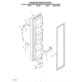 The Freezer Door Gasket is an OEM replacement part for Whirlpool refrigerators. It creates a tight insulating seal around the perimeter of the freezer door opening. The gasket helps maintain consistent sub-freezing temperatures inside by preventing cold air loss. Causes relate to natural compression fatigue over time, cracks developing with use, or accidental slicing/tears from sharp edges within the freezer. Symptoms of a compromised gasket include:
