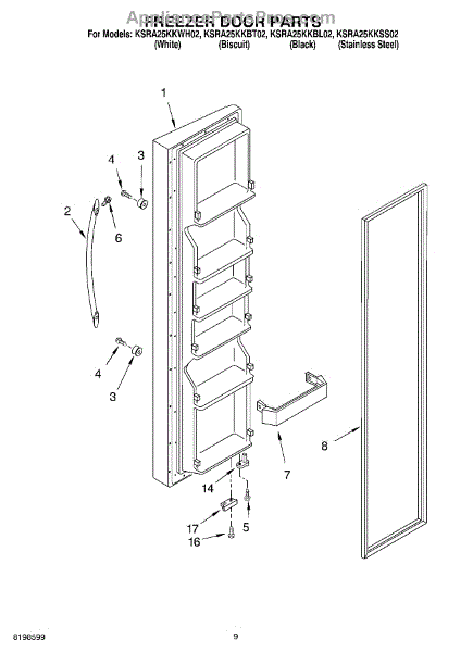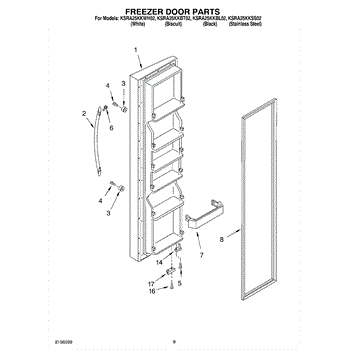 Parts for Kitchenaid KSRA25KKWH02: 06 - Freezer Door Parts