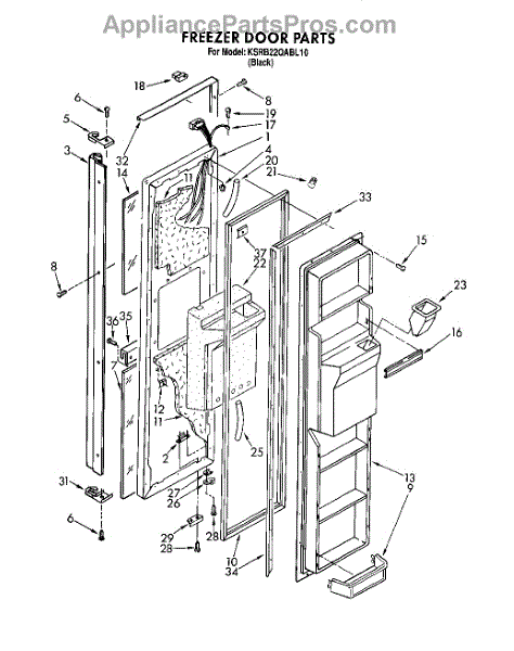 This freezer door gasket creates a tight seal around the door to keep cold air in and humid air out. Replacing a worn gasket restores proper temperature control, reduces frost, and helps the door close and seal correctly.