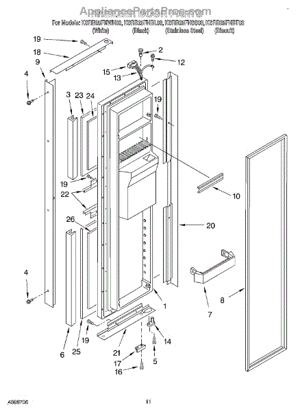 The Freezer Door Gasket is an OEM replacement part for Whirlpool refrigerators. It creates a tight insulating seal around the perimeter of the freezer door opening. The gasket helps maintain consistent sub-freezing temperatures inside by preventing cold air loss. Causes relate to natural compression fatigue over time, cracks developing with use, or accidental slicing/tears from sharp edges within the freezer. Symptoms of a compromised gasket include: