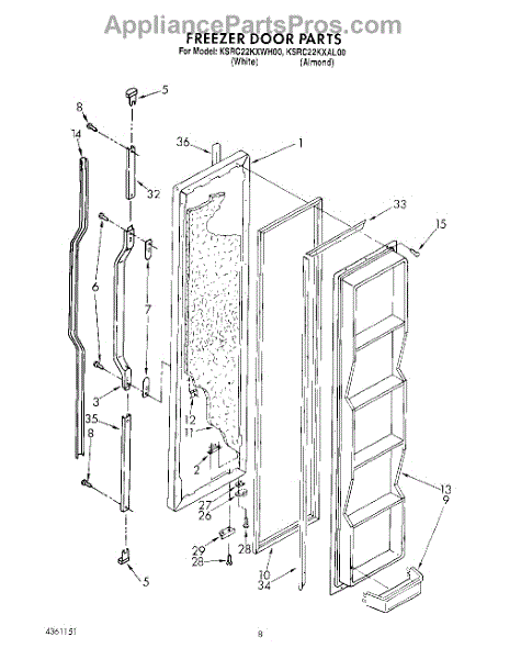 This freezer door gasket creates a tight seal around the door to keep cold air in and humid air out. Replacing a worn gasket restores proper temperature control, reduces frost, and helps the door close and seal correctly.