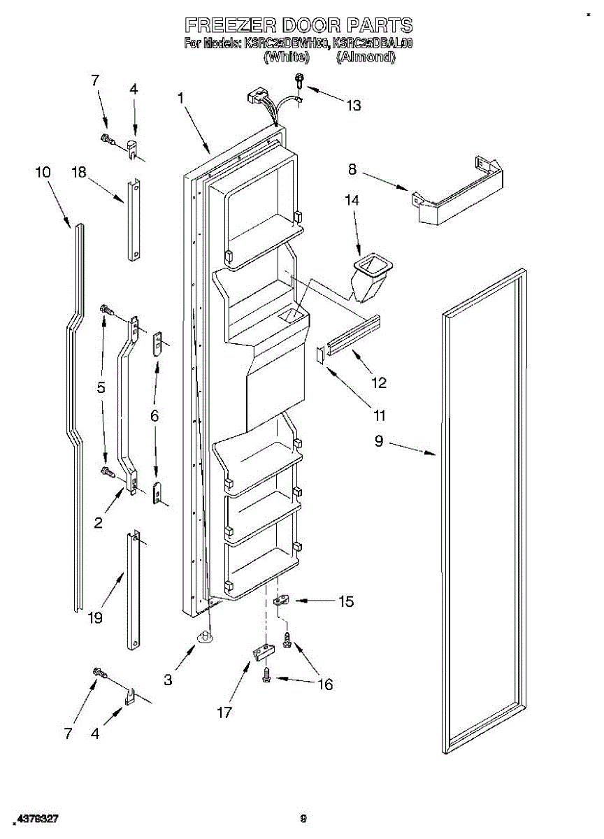 Parts for Kitchenaid KSRC25DBAL00: 07 - Freezer Door Parts