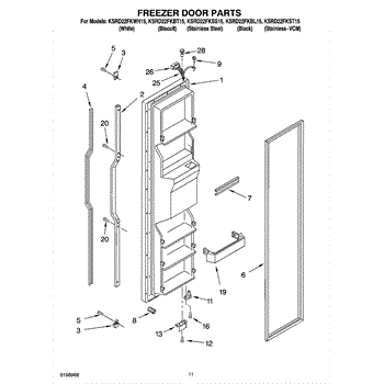Parts for Kitchenaid KSRD22FKST15: 07 - Freezer Door Parts