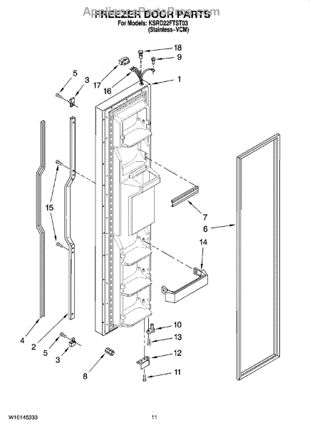 Parts for Kitchenaid KSRD22FTST03: 07 - Freezer Door Parts
