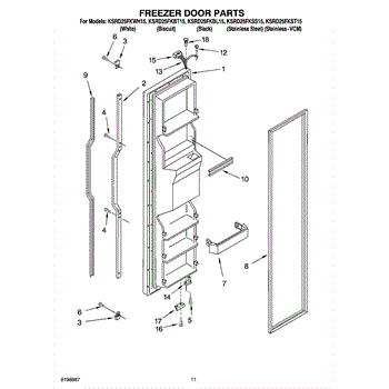 Parts for Kitchenaid KSRD25FKBT15: 07 - Freezer Door Parts