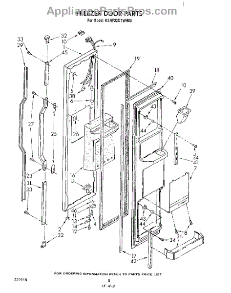This screw is used to secure the handle end cap to the center of the door. The screw size measures 8-18 x 1/2 inches.