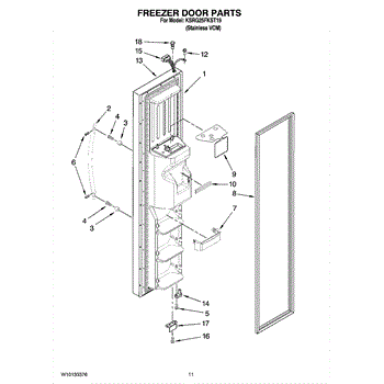 The Freezer Door Gasket is an OEM part for Whirlpool side-by-side and bottom-freezer refrigerators. As the seal that encloses cold air inside the freezer compartment, this gasket is critical for maintaining proper freezing temperatures.