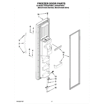 The Door Gasket is an OEM part for Whirlpool refrigerators. It creates an airtight seal around the door, helping to maintain the internal temperature and prevent cold air from escaping.