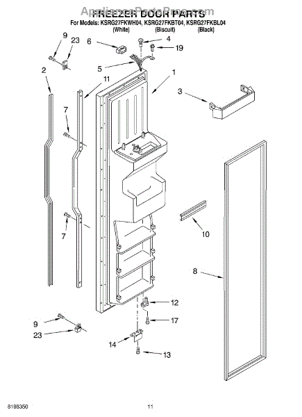 Parts for Kitchenaid KSRG27FKBT04: 07 - Freezer Door Parts