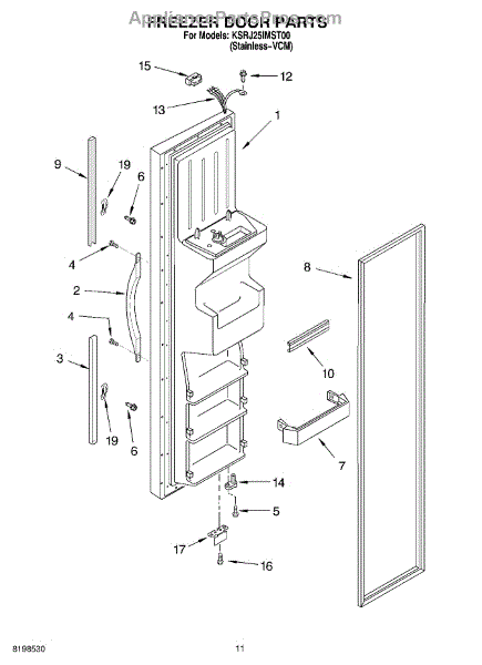 The Freezer Door Gasket is an OEM part for Whirlpool side-by-side and bottom-freezer refrigerators. As the seal that encloses cold air inside the freezer compartment, this gasket is critical for maintaining proper freezing temperatures.