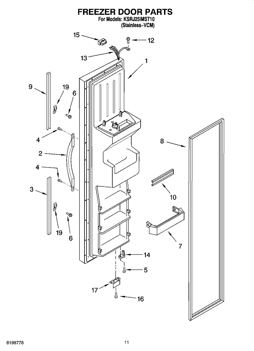 The Freezer Door Gasket is an OEM part for Whirlpool side-by-side and bottom-freezer refrigerators. As the seal that encloses cold air inside the freezer compartment, this gasket is critical for maintaining proper freezing temperatures.
