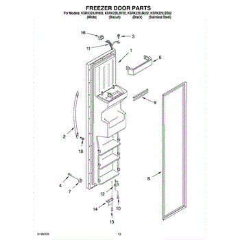 Parts for Kitchenaid KSRK22ILSS02: 08 - Freezer Door Parts