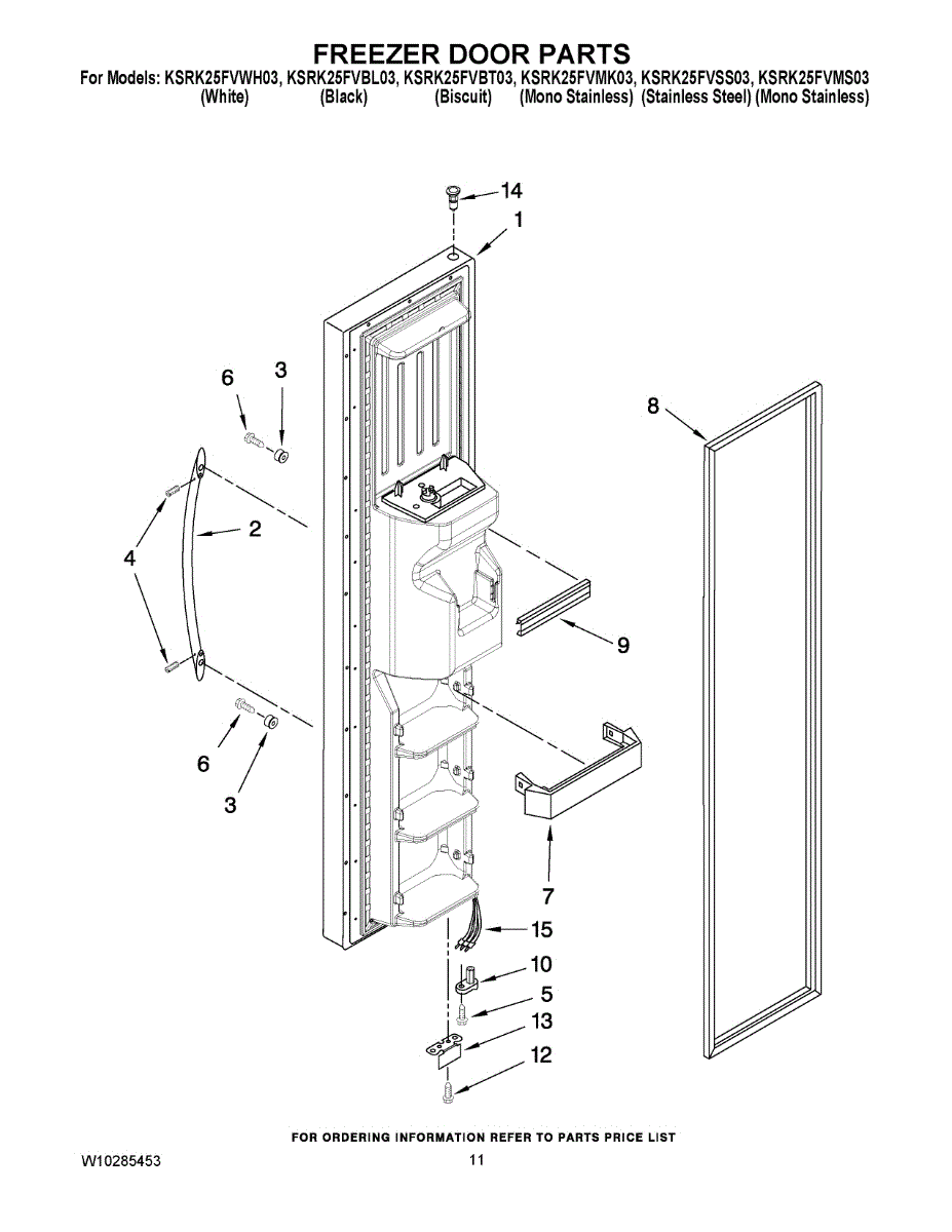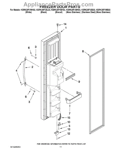 Parts for Kitchenaid KSRK25FVWH03: 07 - Freezer Door Parts