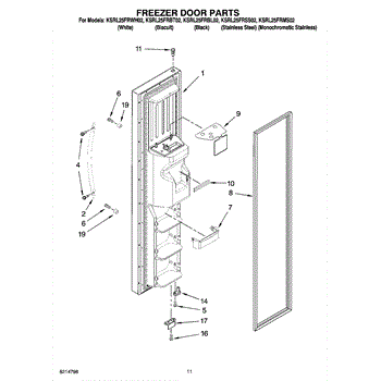 The Freezer Door Gasket is an OEM replacement part for Whirlpool refrigerators. It creates a tight insulating seal around the perimeter of the freezer door opening. The gasket helps maintain consistent sub-freezing temperatures inside by preventing cold air loss. Causes relate to natural compression fatigue over time, cracks developing with use, or accidental slicing/tears from sharp edges within the freezer. Symptoms of a compromised gasket include: