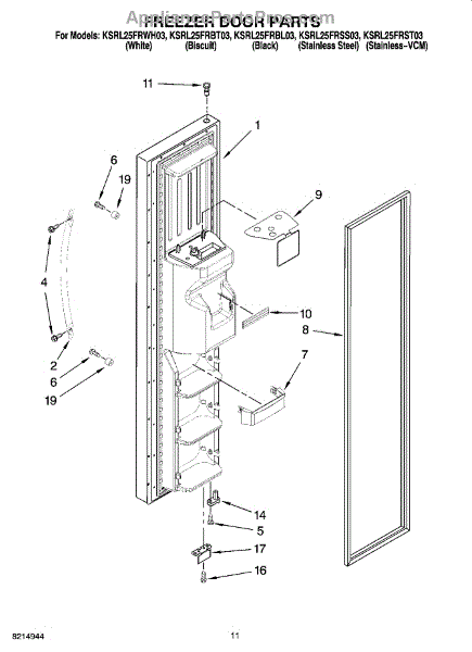 Parts for Kitchenaid KSRL25FRST03: 07 - Freezer Door Parts