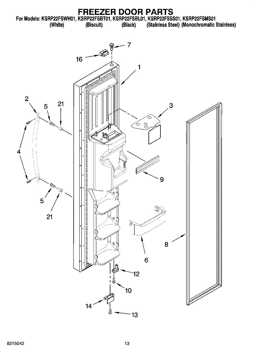Parts for Kitchenaid KSRP22FSBL01: 08 - Freezer Door Parts