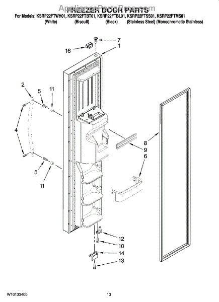 Parts for Kitchenaid KSRP22FTMS01: 08 - Freezer Door Parts