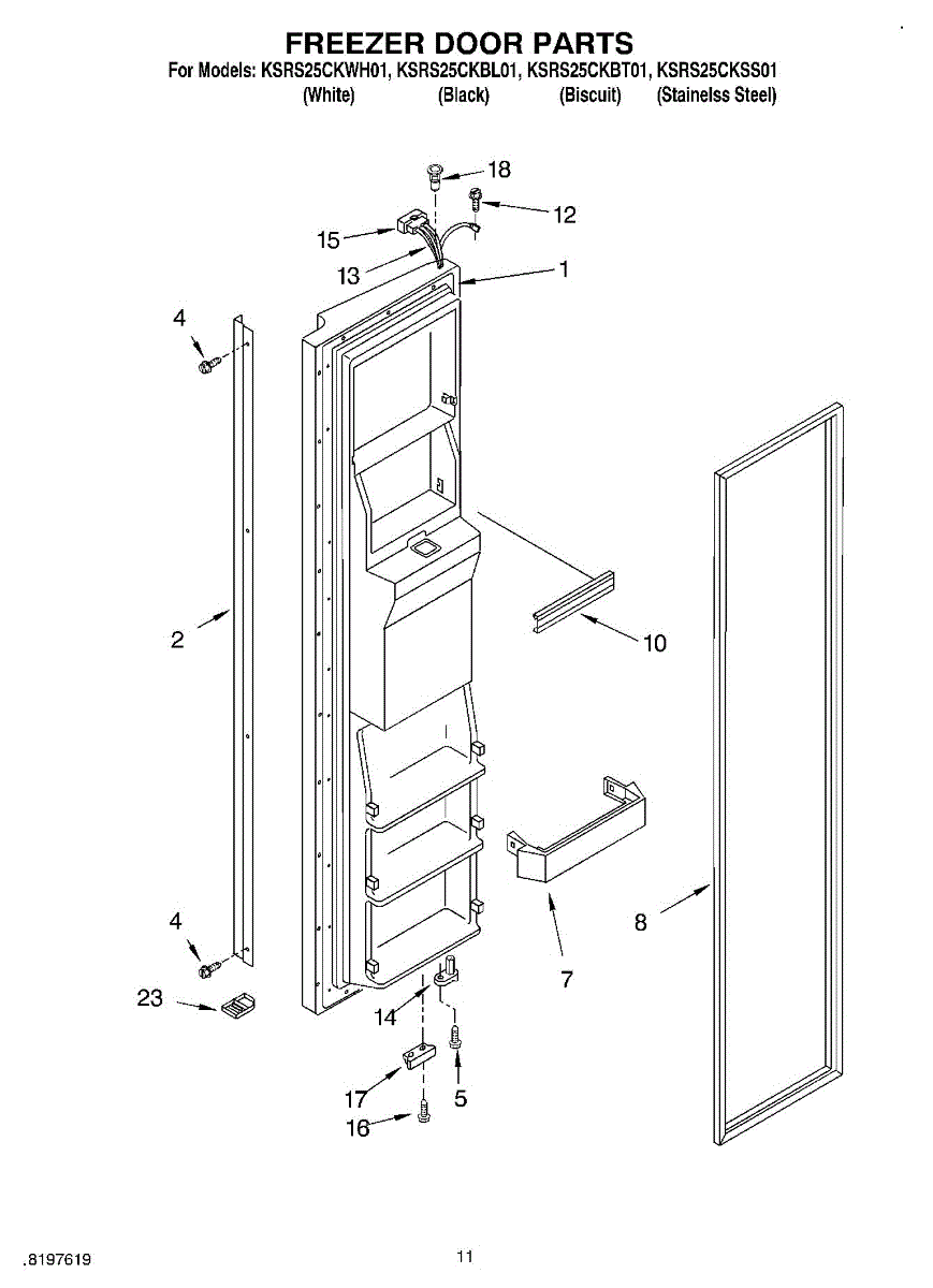 Parts for Kitchenaid KSRS25CKWH01: 07 - Freezer Door Parts