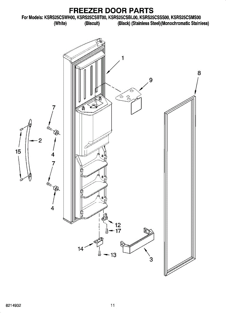 Freezer door gasket seals cold air inside your freezer compartment. Replace if torn, cracked, or door won't stay closed. Confirm fit with your model number.