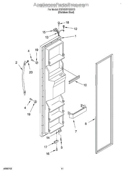 Parts for Kitchenaid KSRS25FGSS13: 07 - Freezer Door Parts