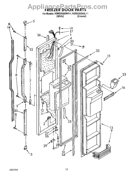 Parts for Kitchenaid KSRS25QXAL11: 09 - Freezer Door Parts