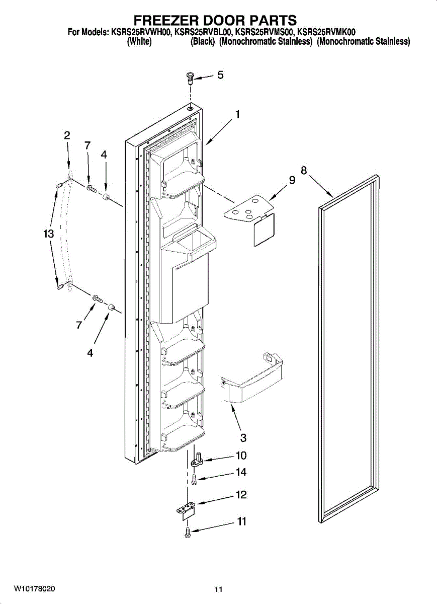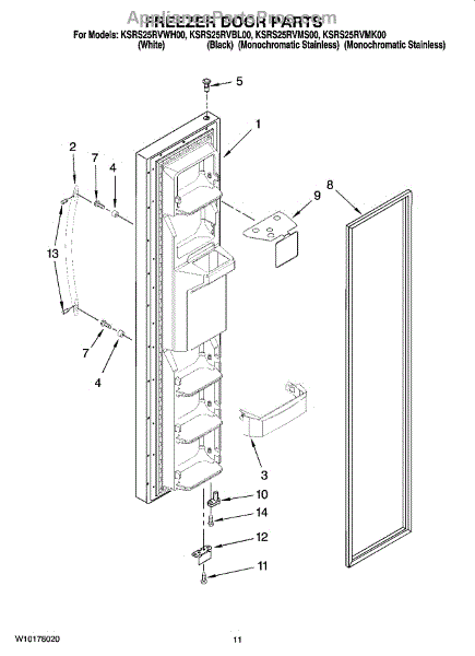 Mounts on the bottom of the freezer door.