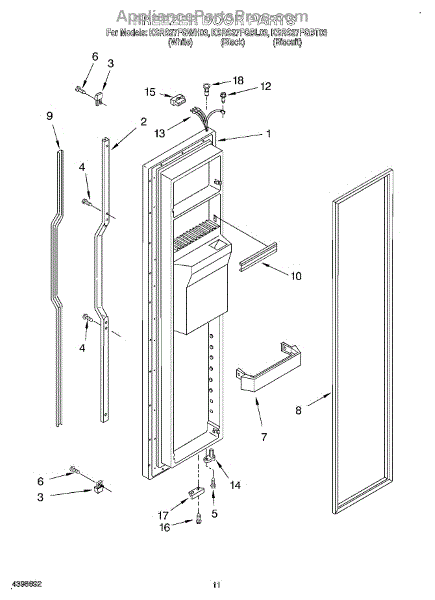 Parts for Kitchenaid KSRS27FGBL03: 07 - Freezer Door Parts