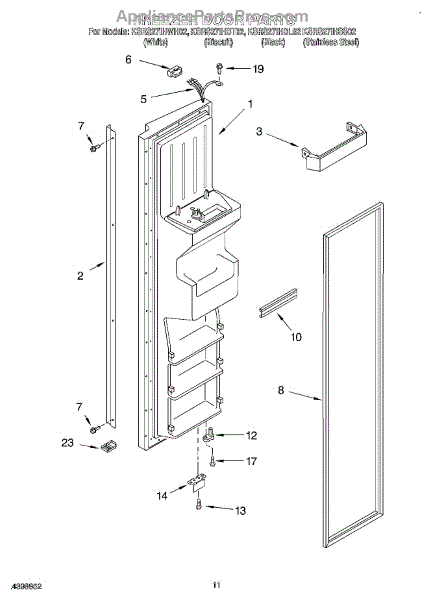 Parts for Kitchenaid KSRS27IHBL02: 07 - Freezer Door Parts