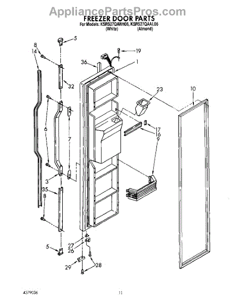 Parts for Kitchenaid KSRS27QAWH06: 07 - Freezer Door Parts