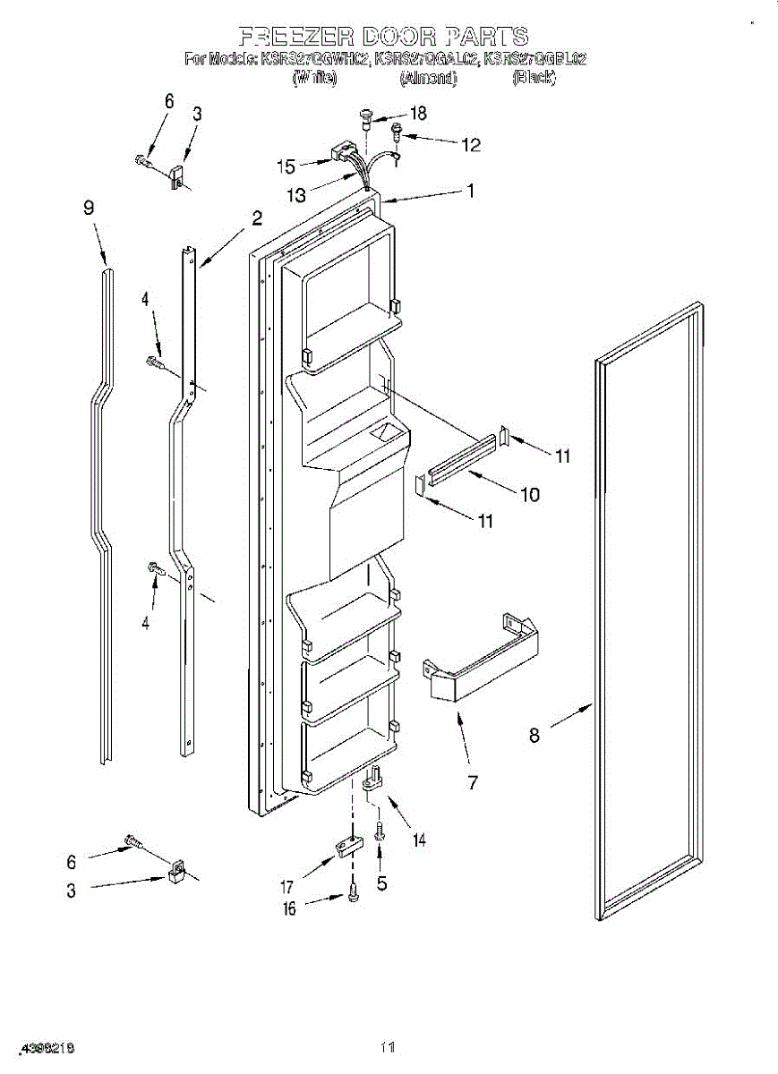 The Freezer Door Gasket is an OEM replacement part for Whirlpool refrigerators. It creates a tight insulating seal around the perimeter of the freezer door opening. The gasket helps maintain consistent sub-freezing temperatures inside by preventing cold air loss. Causes relate to natural compression fatigue over time, cracks developing with use, or accidental slicing/tears from sharp edges within the freezer. Symptoms of a compromised gasket include: