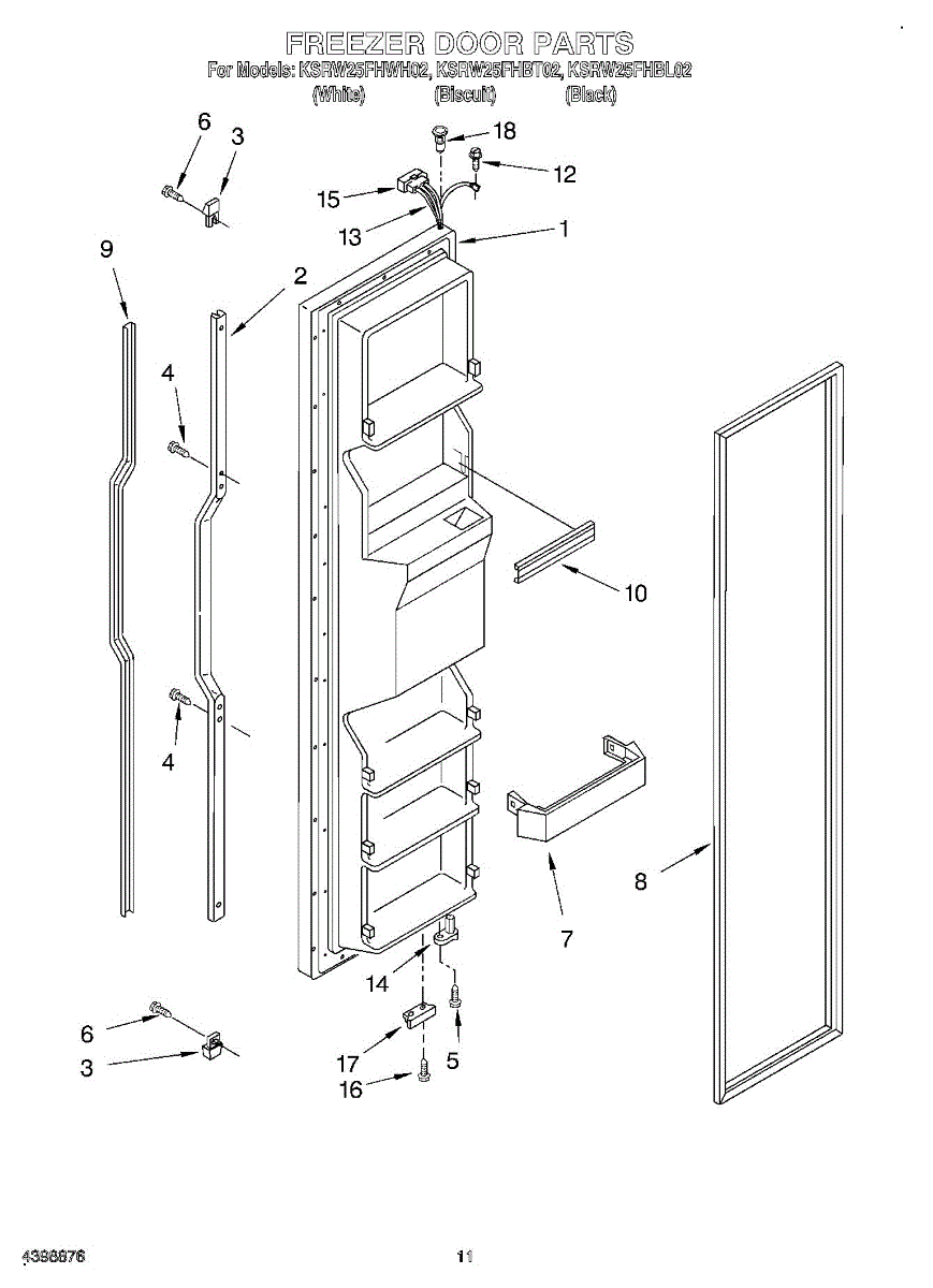 Parts for Kitchenaid KSRW25FHWH02: 07 - Freezer Door Parts