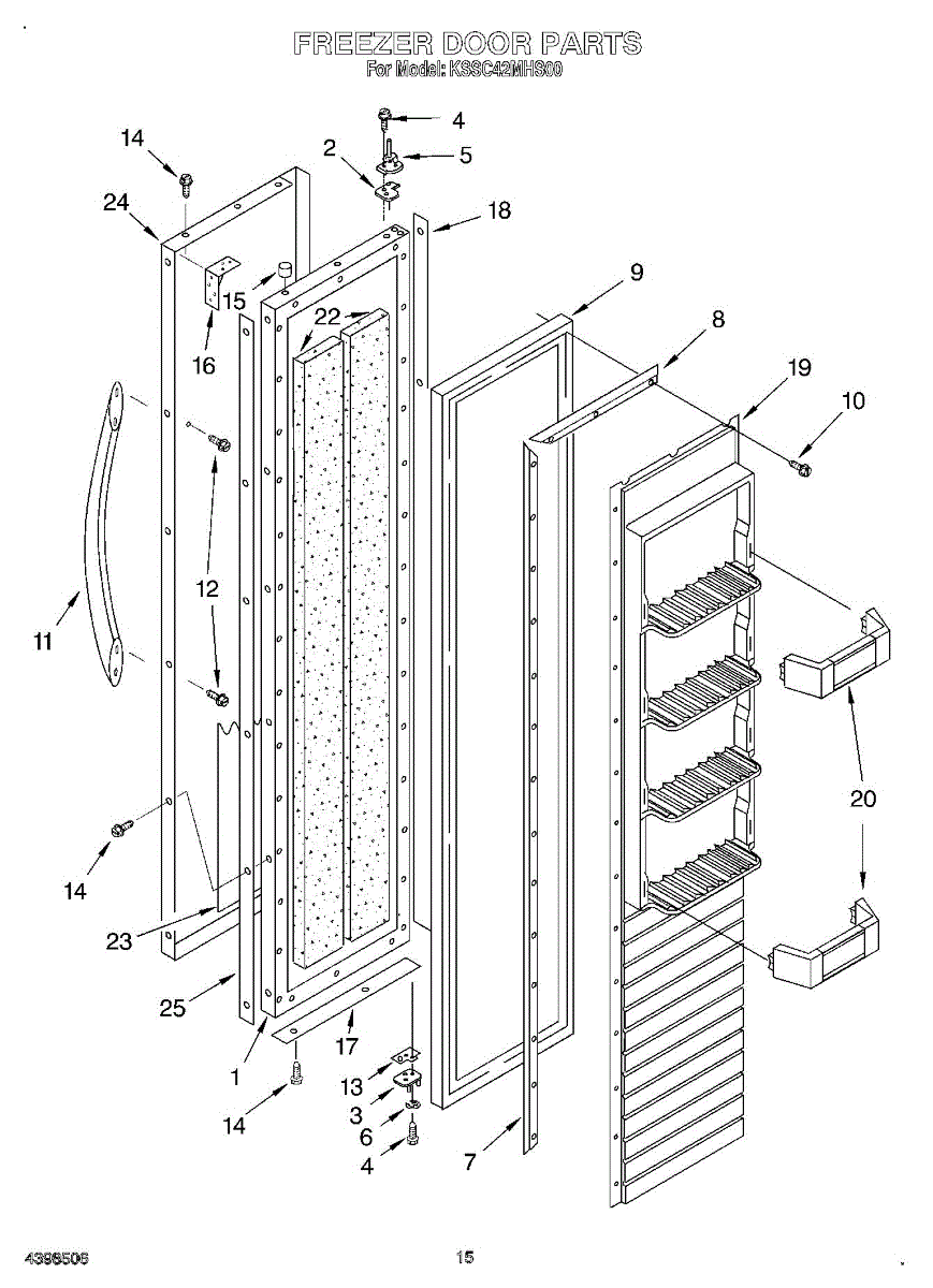 This screw is used to secure the handle end cap to the center of the door. The screw size measures 8-18 x 1/2 inches.