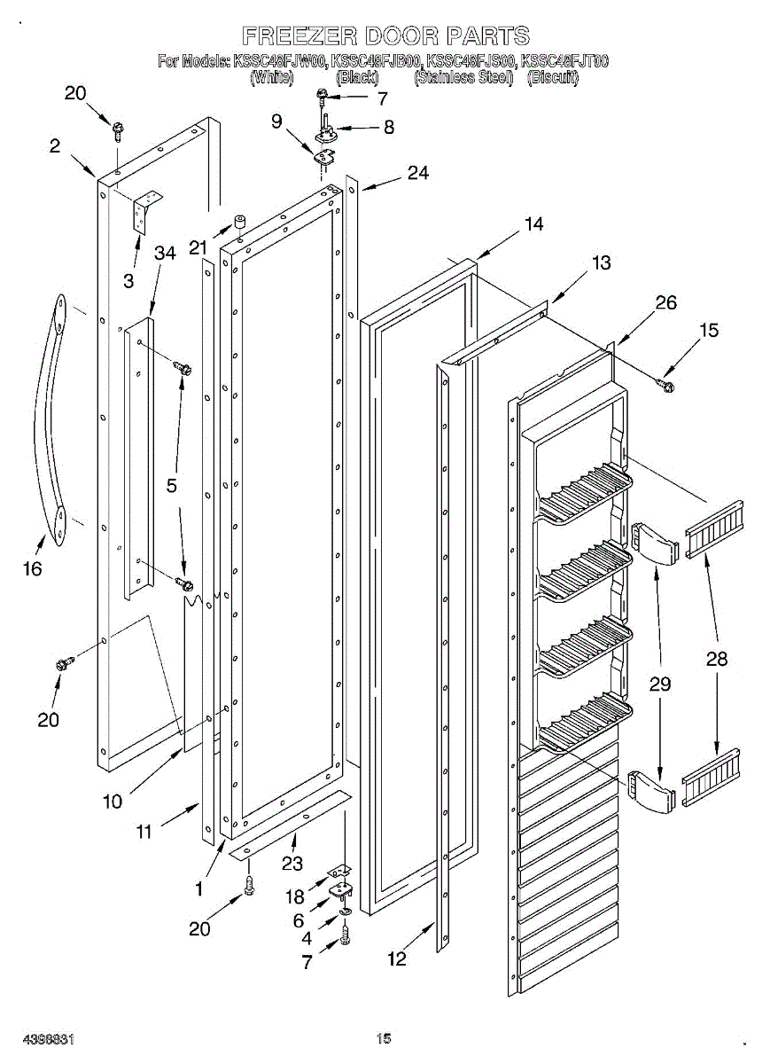 This screw is used to secure the handle end cap to the center of the door. The screw size measures 8-18 x 1/2 inches.