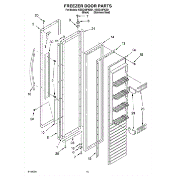 This screw is used to secure the handle end cap to the center of the door. The screw size measures 8-18 x 1/2 inches.