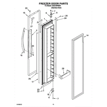 This shallow freezer door bin mounts on the inner door and restores organized storage for smaller items. Replace a cracked, loose, or missing bin to keep packages secure and easy to access.