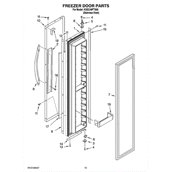 This shallow freezer door bin mounts on the inner door and restores organized storage for smaller items. Replace a cracked, loose, or missing bin to keep packages secure and easy to access.