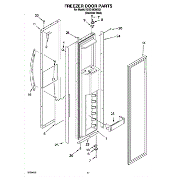 This shallow freezer door bin mounts on the inner door and restores organized storage for smaller items. Replace a cracked, loose, or missing bin to keep packages secure and easy to access.