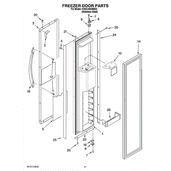 This shallow freezer door bin mounts on the inner door and restores organized storage for smaller items. Replace a cracked, loose, or missing bin to keep packages secure and easy to access.