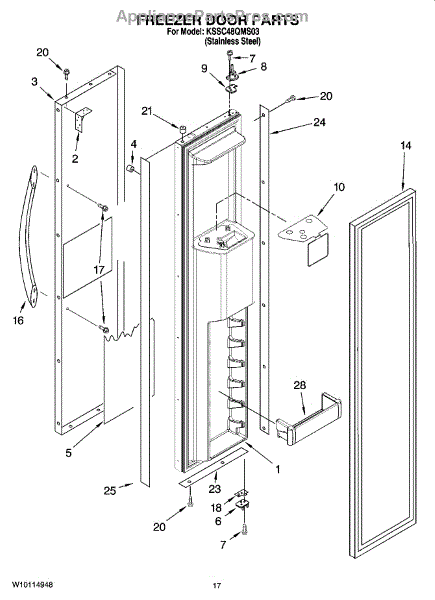 This is a fastener screw used to secure appliance panels and components where a 10-24 thread is required. It provides a reliable hold for reattaching parts during repairs and maintenance. What it does: