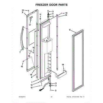 This shallow freezer door bin mounts on the inner door and restores organized storage for smaller items. Replace a cracked, loose, or missing bin to keep packages secure and easy to access.
