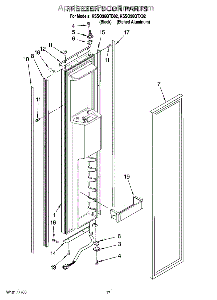 Parts for Kitchenaid KSSO36QTB02: 11 - Freezer Door Parts