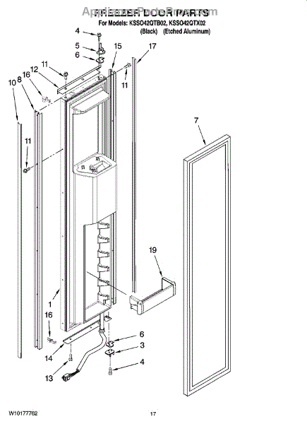 Parts for Kitchenaid KSSO42QTX02: 11 - Freezer Door Parts