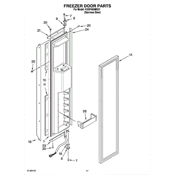 This shallow freezer door bin mounts on the inner door and restores organized storage for smaller items. Replace a cracked, loose, or missing bin to keep packages secure and easy to access.