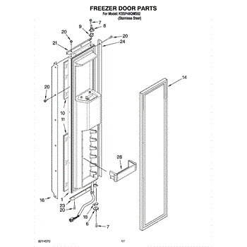 This shallow freezer door bin mounts on the inner door and restores organized storage for smaller items. Replace a cracked, loose, or missing bin to keep packages secure and easy to access.