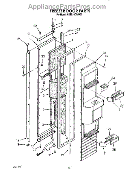Parts for Kitchenaid KSSS36DWW00: 11 - Freezer Door Parts