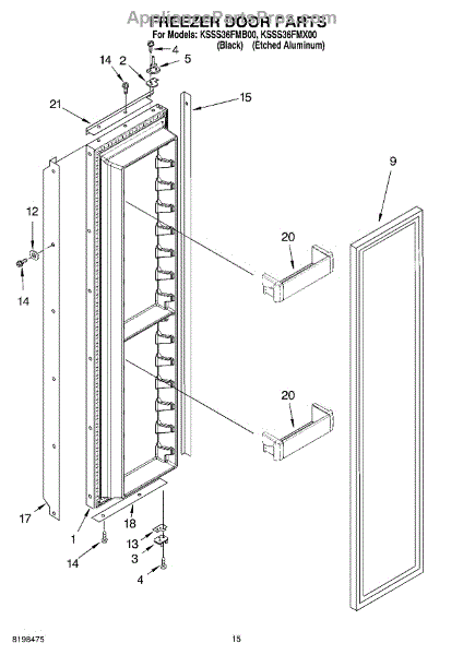 Parts for Kitchenaid KSSS36FMX00: 10 - Freezer Door Parts