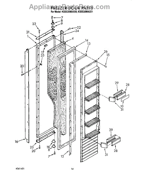 Parts for Kitchenaid KSSS36MAX00: 11 - Freezer Door Parts