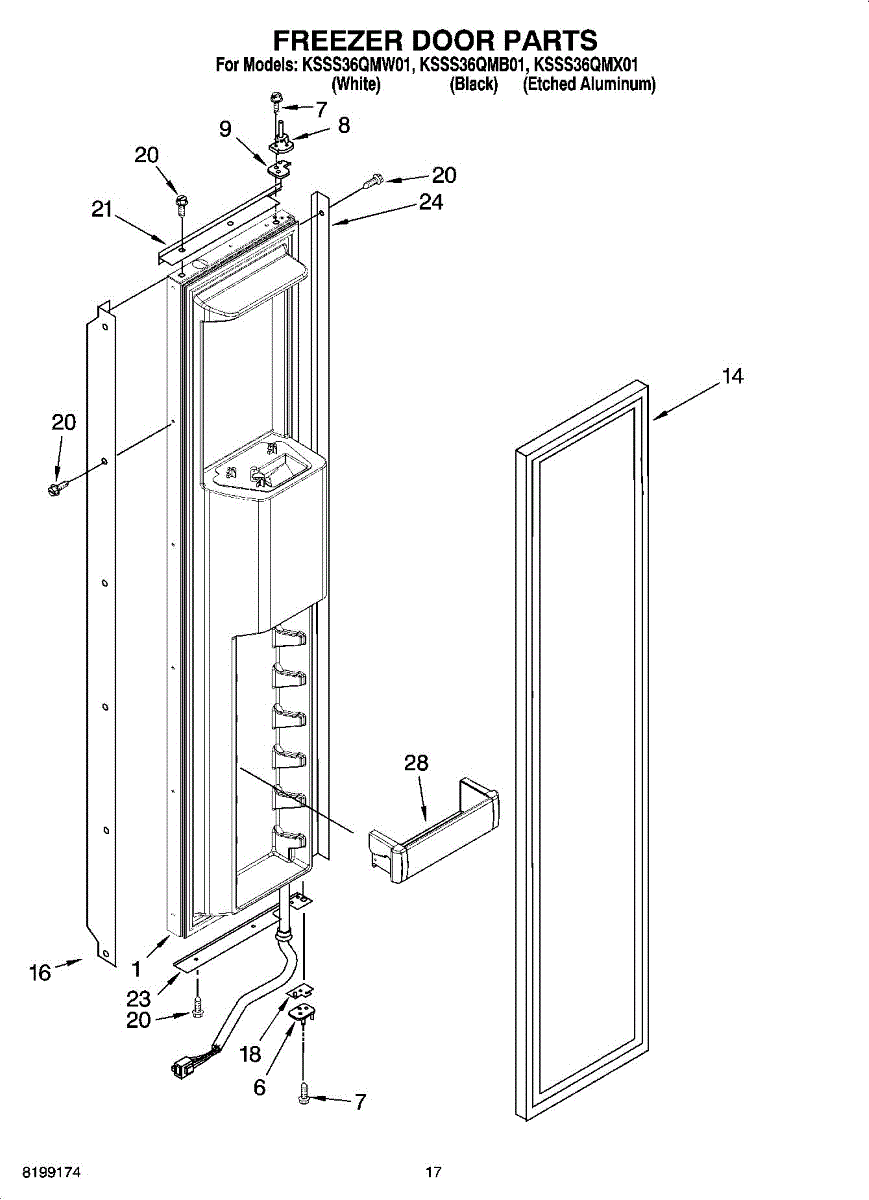 Parts for Kitchenaid KSSS36QMW01: 11 - Freezer Door Parts