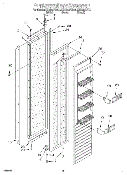 Parts for Kitchenaid KSSS42FJW00: 11 - Freezer Door Parts